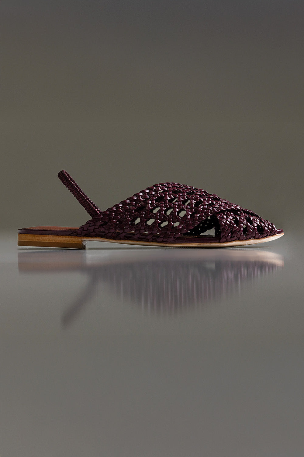 Couro legítimo - cabedal couro marsala - técnica tressê/ macramê - solado couro natural