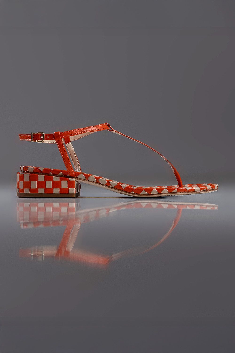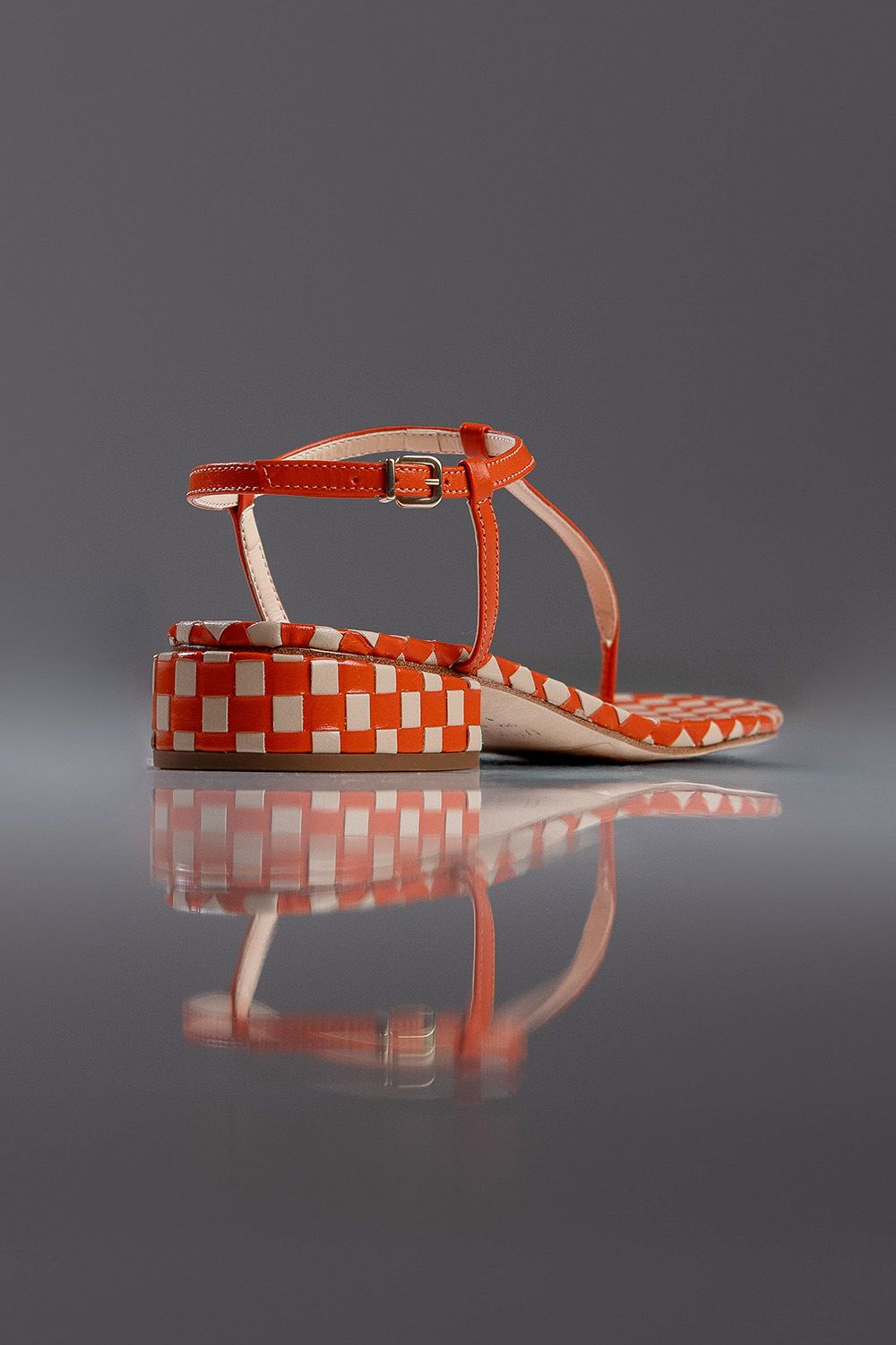 Couro legítimo - técnica tressê 7mm - couro laranja e nude - solado couro natural - salto revestido em couro - 3cm.