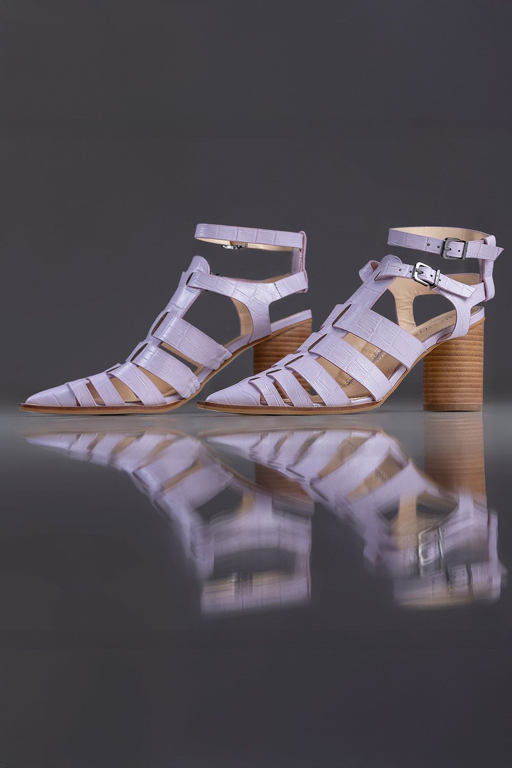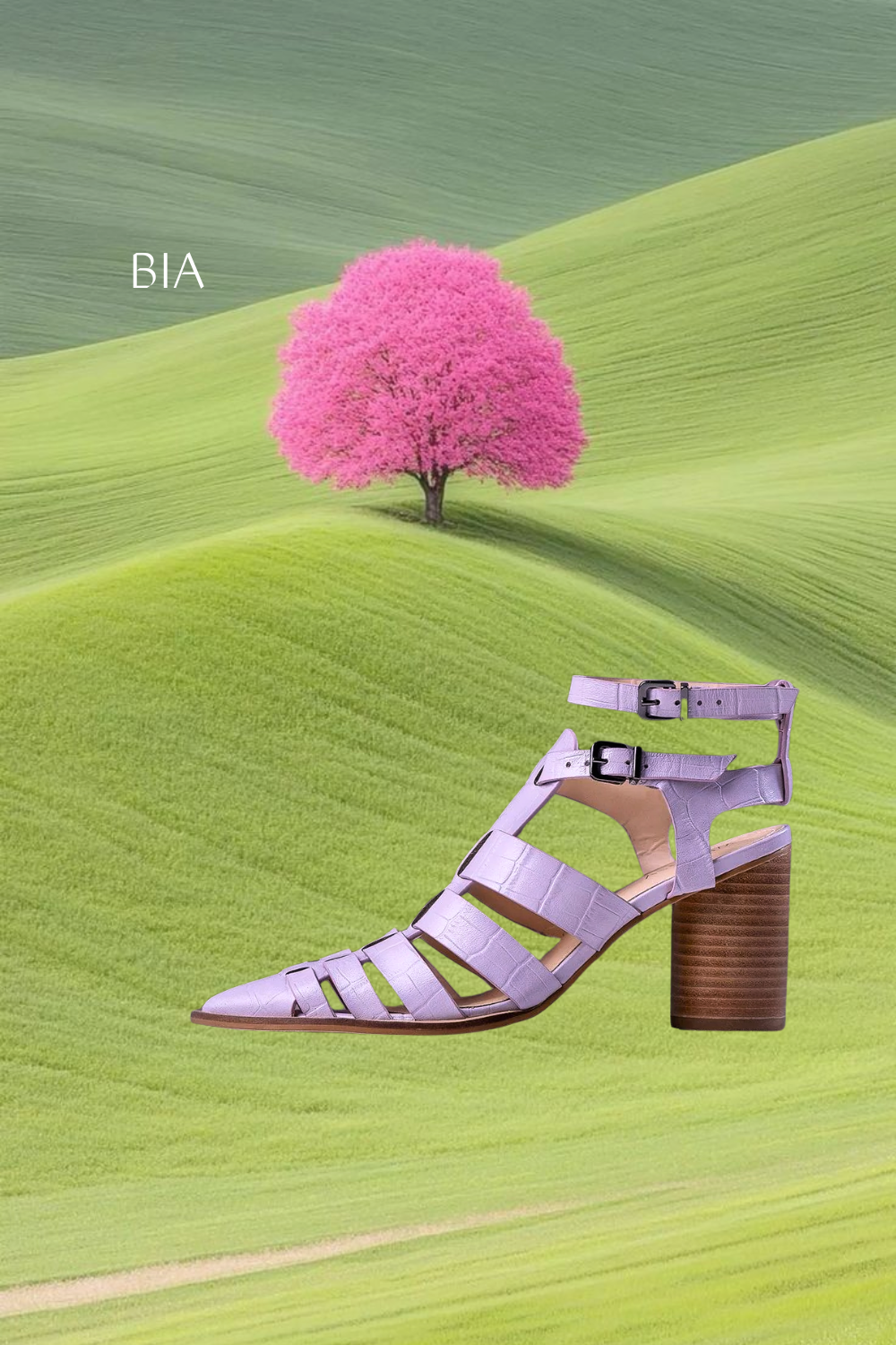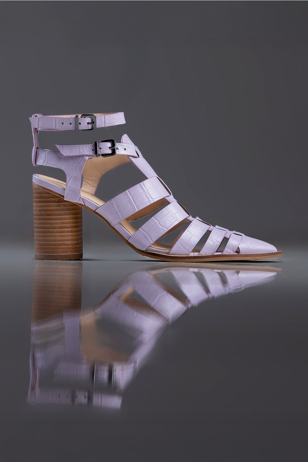 SANDÁLIA BIA - couro tipo croco violeta/ salto fachete natural