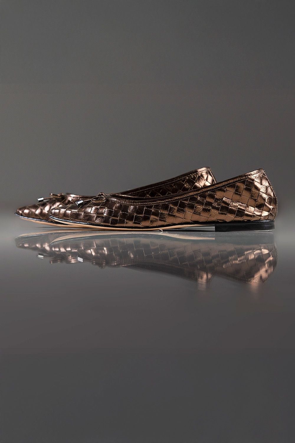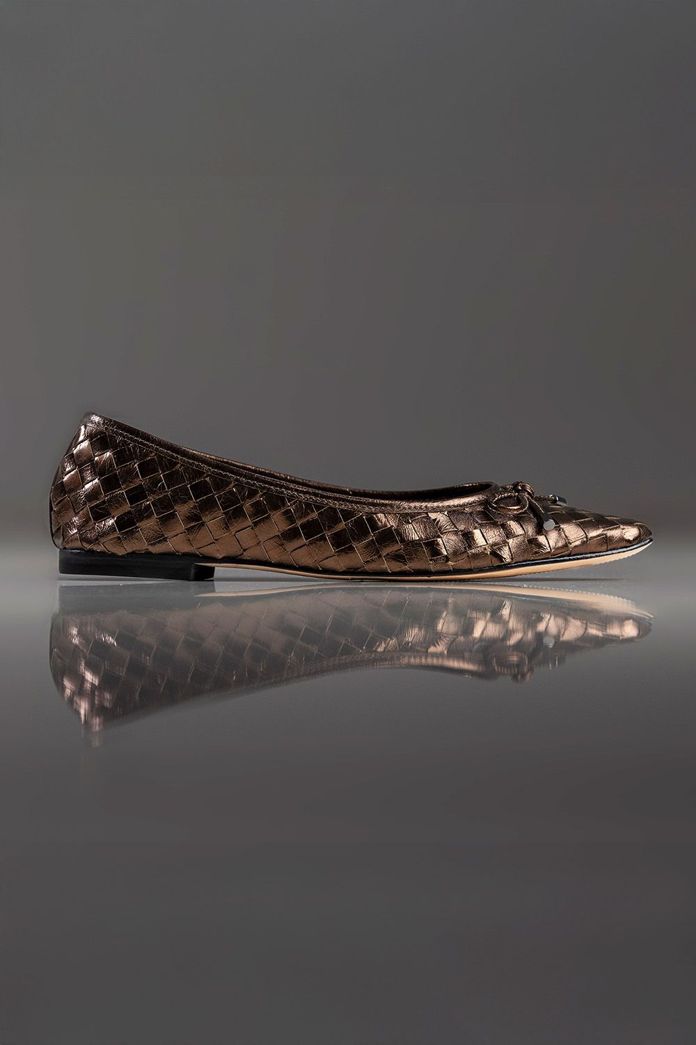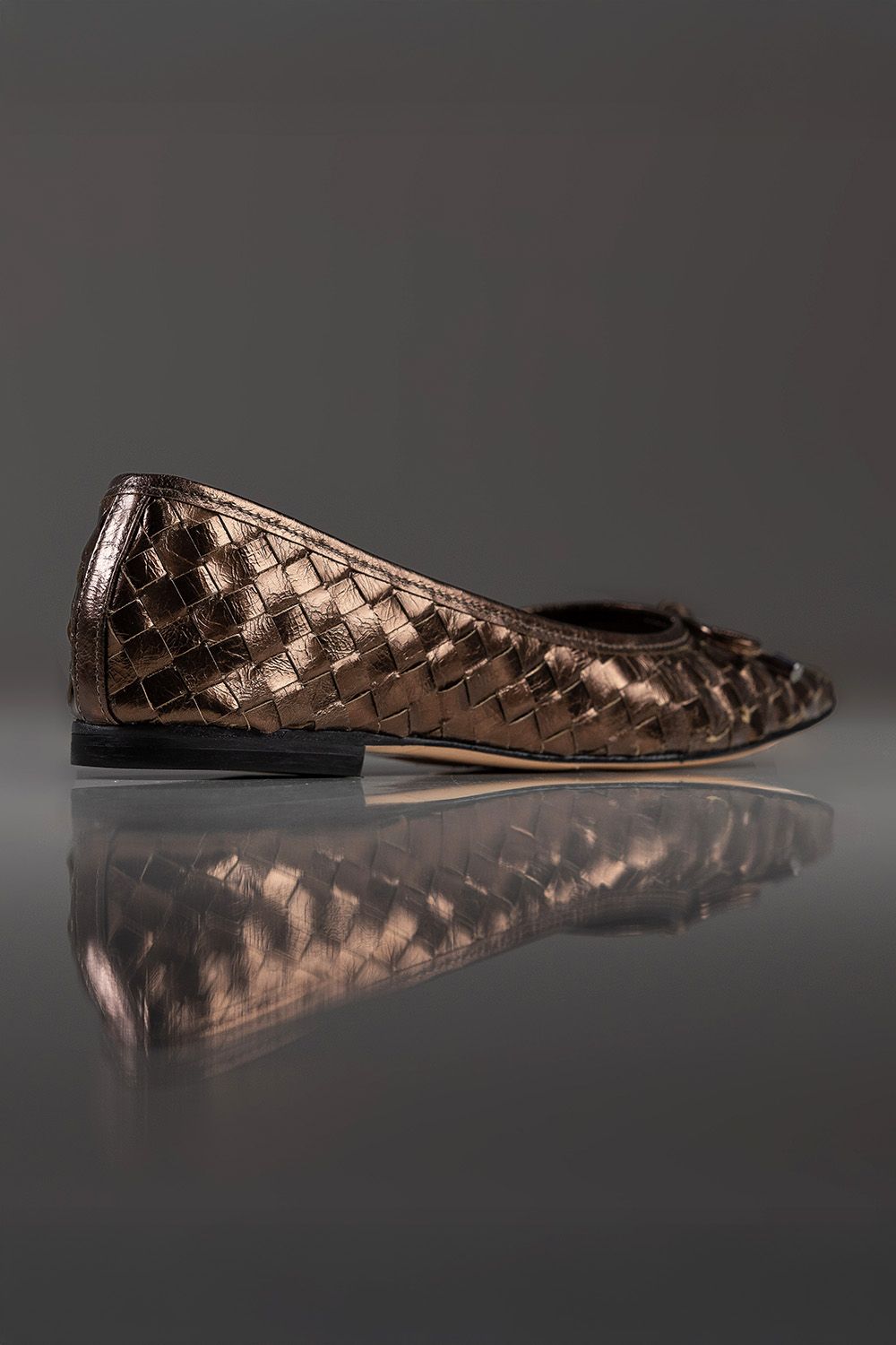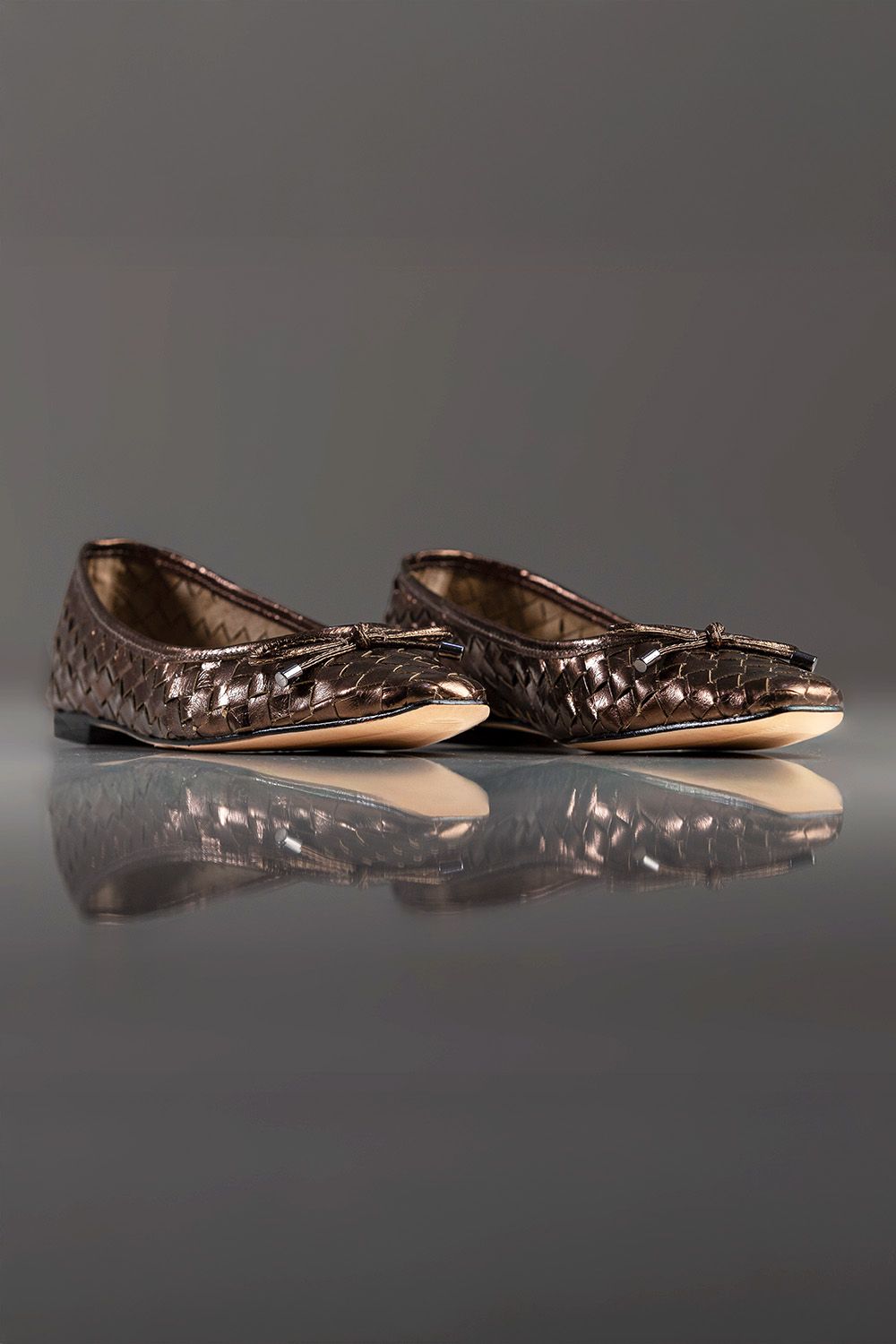 Couro legítimo - técnica tressê 7mm - cabedal couro marrom metalizado - sem forro - solado couro natural.