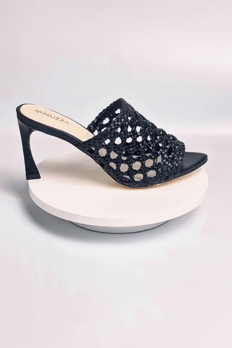 Couro legítimo - cabedal couro preto metalizado - técnica tressê/ macramê - solado couro natural - salto 8cm