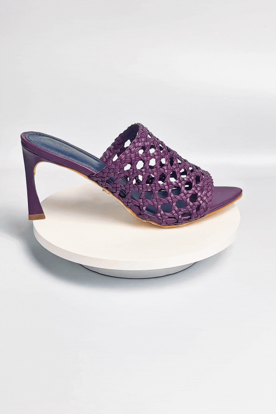 Couro legítimo - cabedal couro púrpura - técnica tressê/ macramê - solado couro natural - salto 8cm.