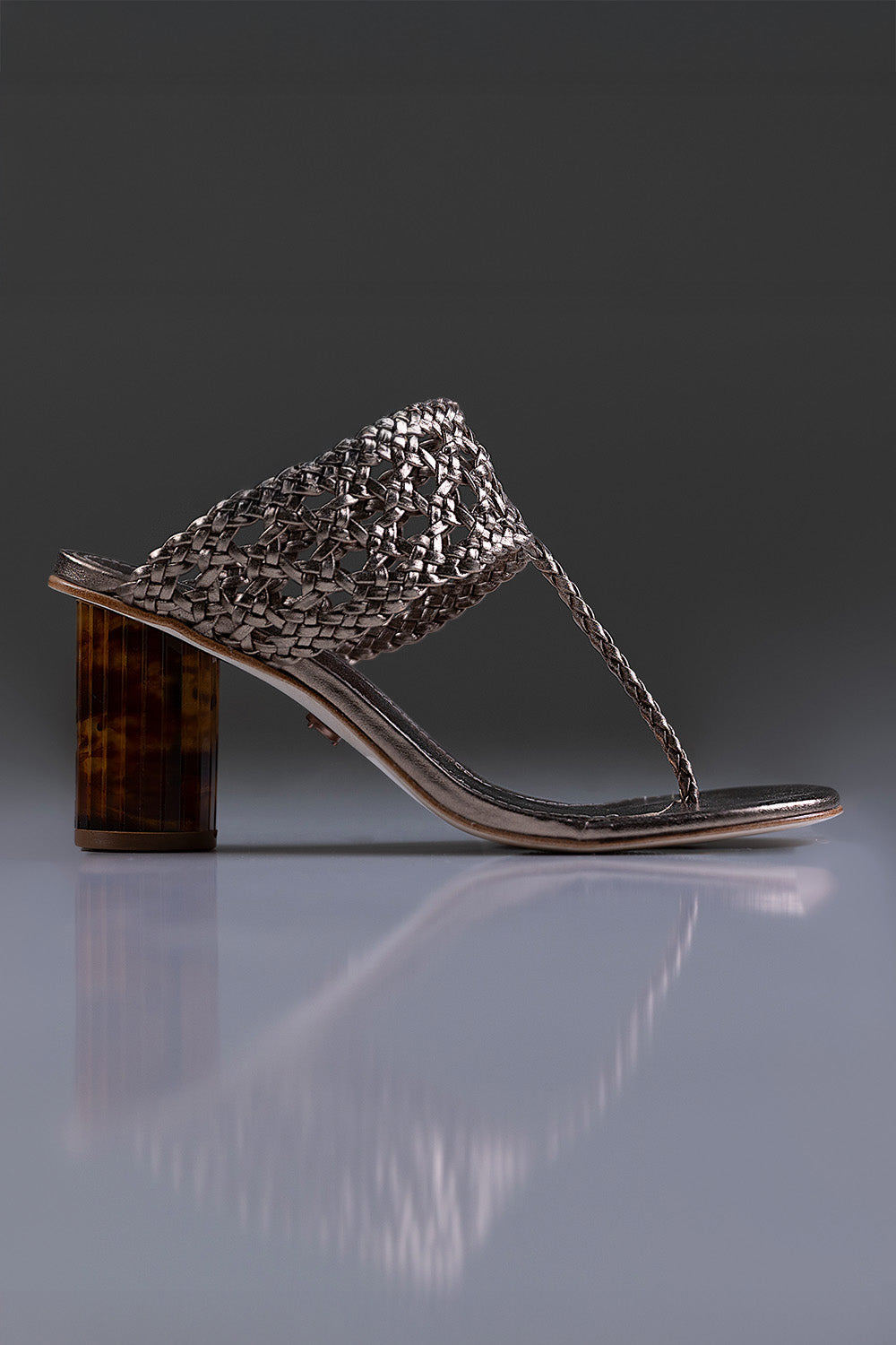 TAMANCO KAYA - couro prata velho/ salto tartaruga